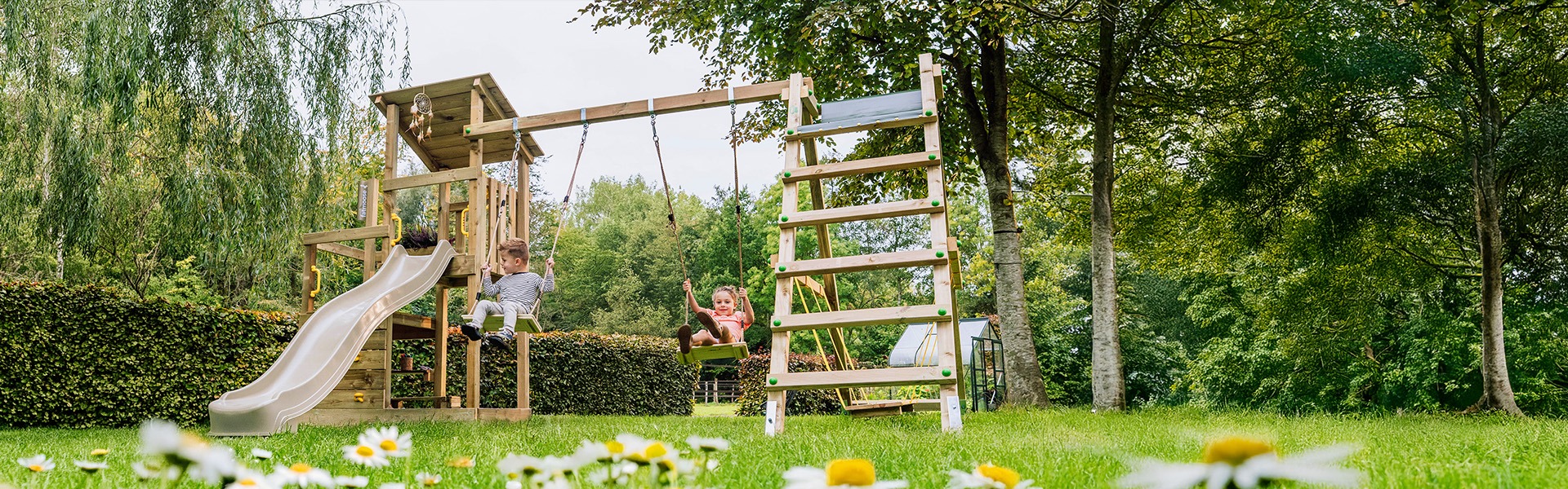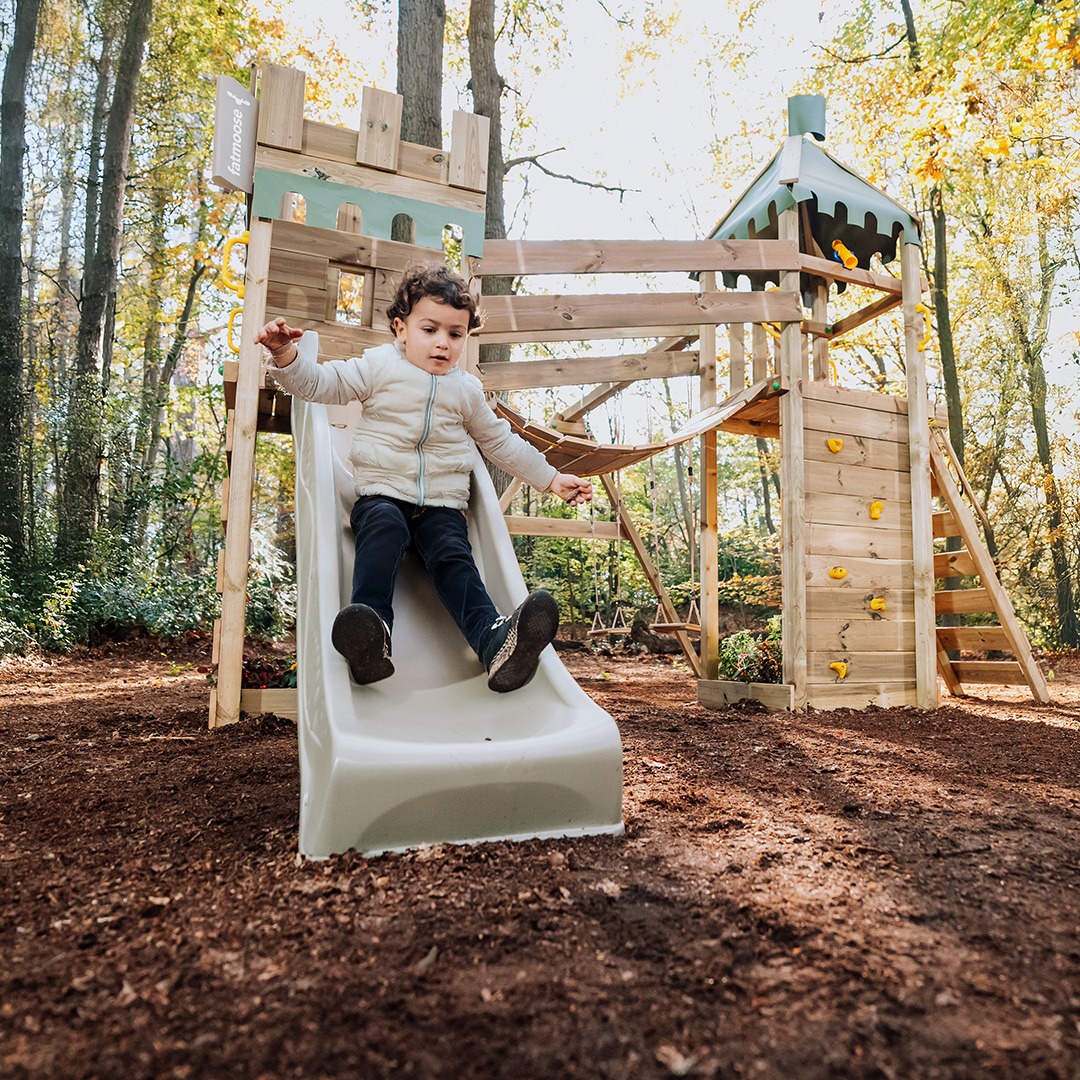With the outdoor play equipment from fatmoose, families learn that it’s just more fun outside. Here at fatmoose, we believe that playing in nature is possible all year round. It not only brings important family moments, but also gives children the opportunity to play, learn and grow on the best place there is: the outdoors. Our climbing frames, swings ,slides and other play equipment are designed to not only provide a safe play environment, but also to create a stimulating place for little explorers in the garden.