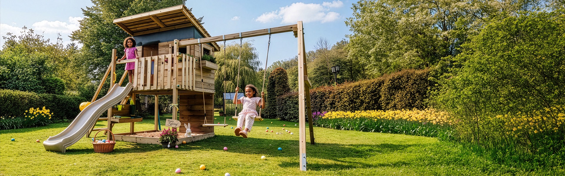 Our mission revolves around the significance of outdoor play, where children can be inspired by the wonders of nature, regardless of the weather or season. With our play equipment, we want to encourage free-spirited and carefree fun, providing children with the means to be active, interact with friends, and unleash their creativity and imagination.